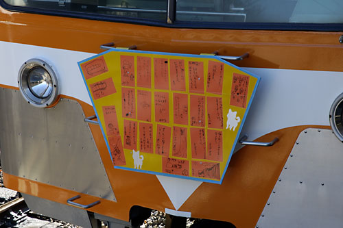 流星は、11月のイベントで募集した子供の書いた願い事を掲げ「みんなの流鉄号」として運転されました。 総武流山電鉄馬橋〜幸谷 06/01/02 |