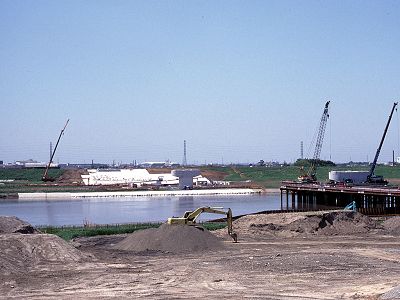 ゴールデンウィーク中サイクリングがてら江戸川の土手を自転車で走っていると 常磐新線の橋梁工事の模様を見ることが出来ました。
